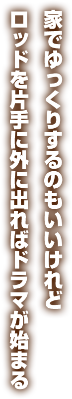 『家でゆっくりするのもいいけれど、ロッドを片手に外に飛び出せば、ドラマが始まる』。そう、外に出て行動しなけりゃ何も起こらないし、だれとも出会えない。しかし、一歩外に出たら、そこには皆平等にドラマティックな事が待っている。さあ!出発しよう!